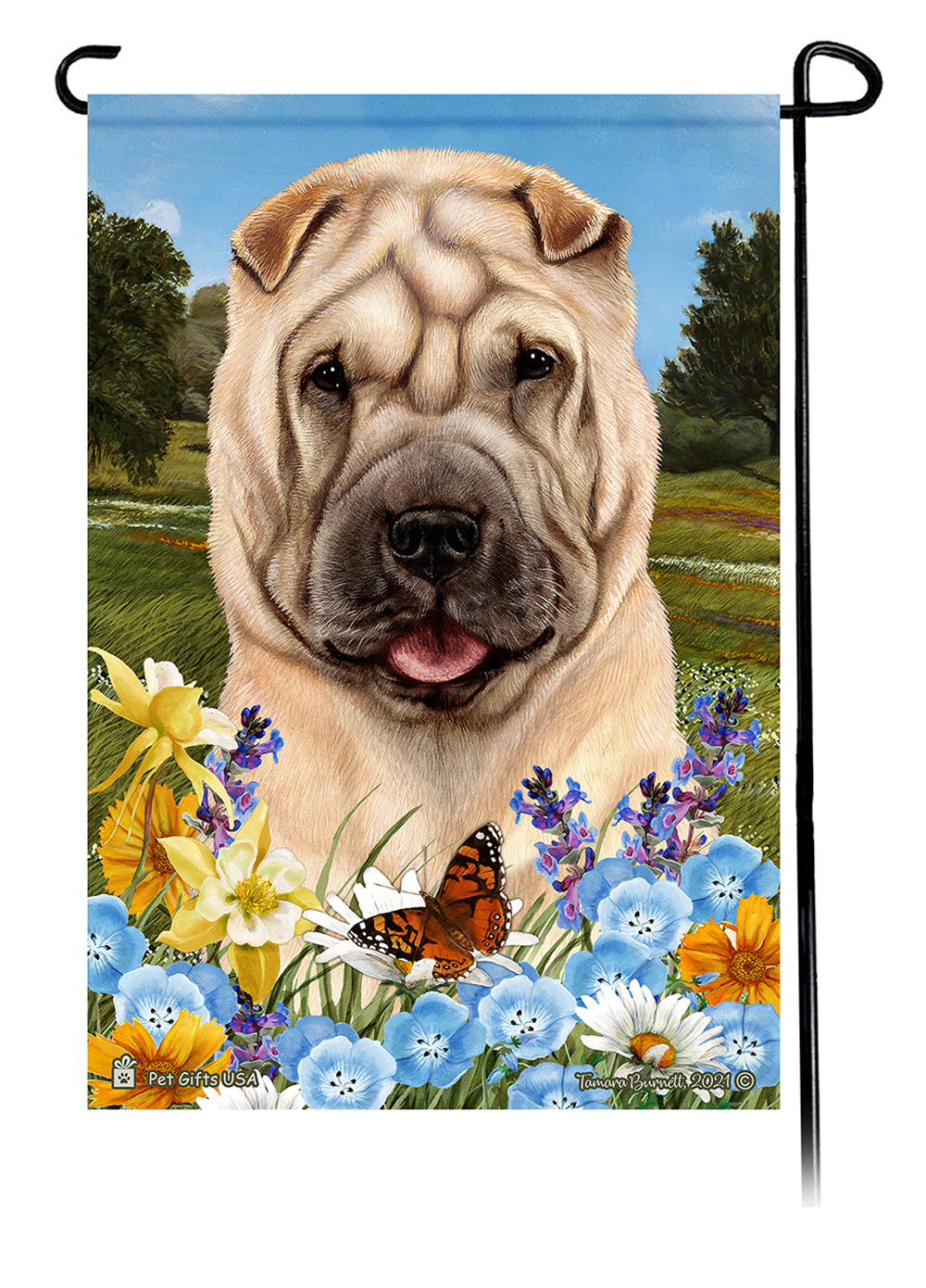Shar Pei Black Summer Flowers Garden Flag Shar Pei Blue Summer Flowers Garden Flag Shar Pei Cream Summer Flowers Garden Flag Shar Pei Fawn Summer Flowers Garden Flag