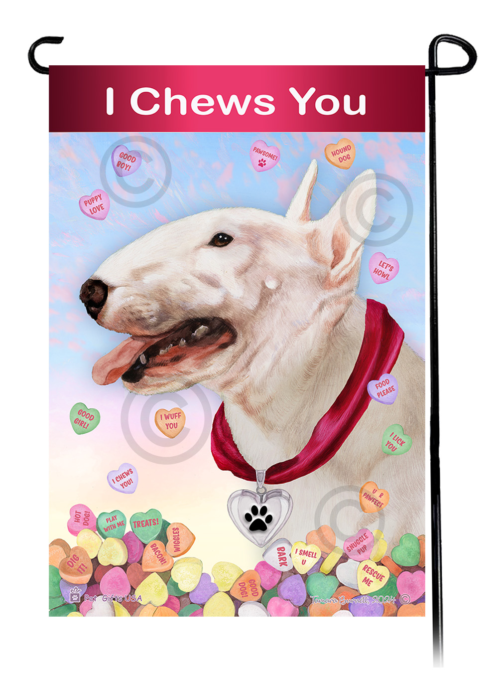 Bull Terrier Black and White - Valentine Sweetheart Garden Flag Bull Terrier Brindle - Valentine Sweetheart Garden Flag Bull Terrier White - Valentine Sweetheart Garden Flag