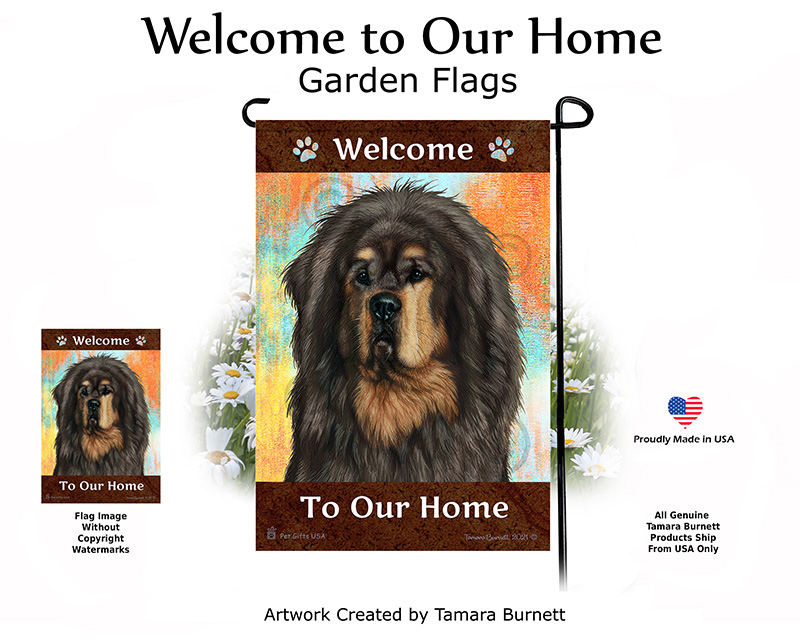 Tibetan Mastiff Black and Tan Welcome To Our Home - Garden Flag Tibetan Mastiff Brown Welcome To Our Home - Garden Flag Tibetan Mastiff Dark Brown Welcome To Our Home - Garden Flag Tibetan Mastiff Gold Welcome To Our Home - Garden Flag Tibetan Mastiff Red Welcome To Our Home - Garden Flag